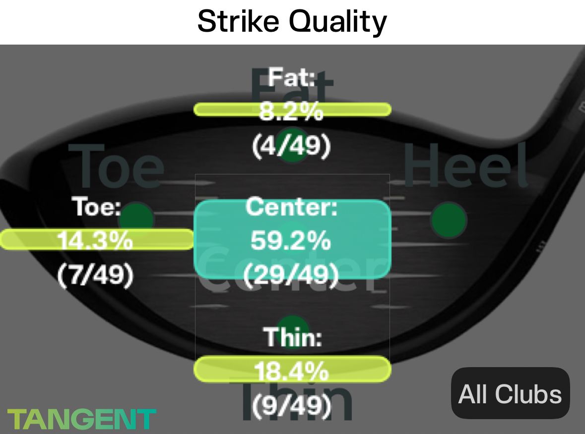 If you don’t know if you’re hitting the center, you should be doing the Impact Drill in TANGENT Golf. It’s pretty simple, but by spraying the face of your driver with foot spray or using impact tape, you can develop the skill of knowing where on the face you hit a golf shot. Being able to recognize this via sound and feedback to your hands is critical to evaluating a shot in your post shot routine on the golf course. Once you get good at recognizing where on the clubhead you hit the ball without spray or tape, you can start logging strike quality in the TANGENT app, particularly for mishits.