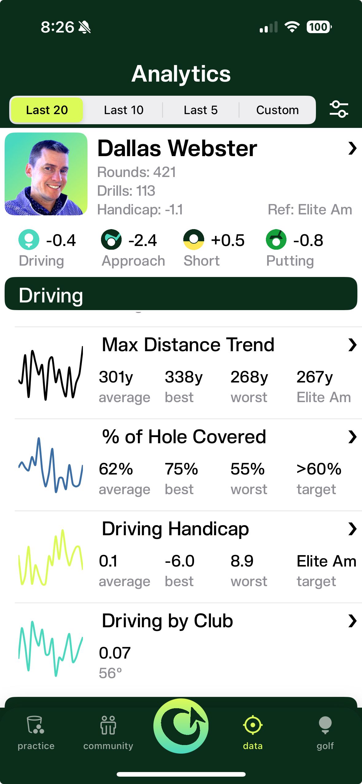 If you don’t know where you stand, TANGENT Golf can help you figure it out. Under the Analytics Tab in the Driving section is a ‘% of Hole Covered’ option.