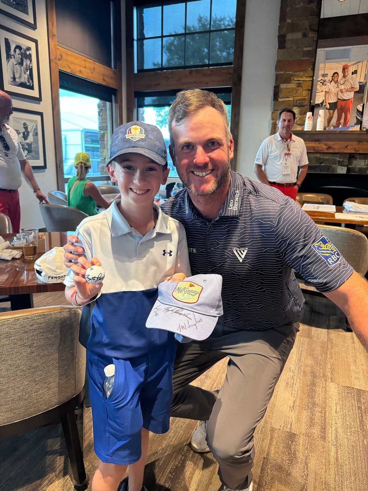Mackenzie Hughes got put on babysitting duties. It was entertaining watching him wear a cowboy hat while keep Taylor’s young son busy on the putting green while Taylor finished his media commitments.