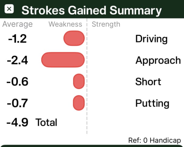He started with the Strokes Gained analysis from his player report where he knew he was going to need to improve his approach game: