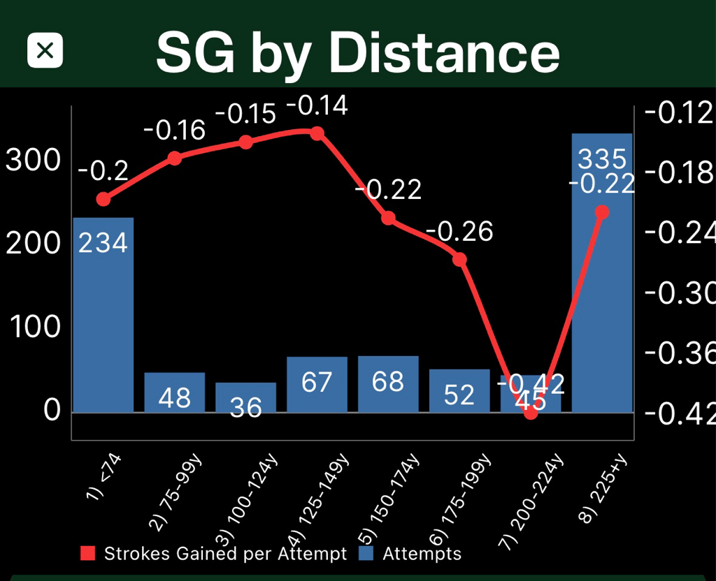 After digesting the rest of the Round Report, Zach wanted to take it a step further and compare his performance by distance from the hole to know specifically what distances he should be working on to improve.