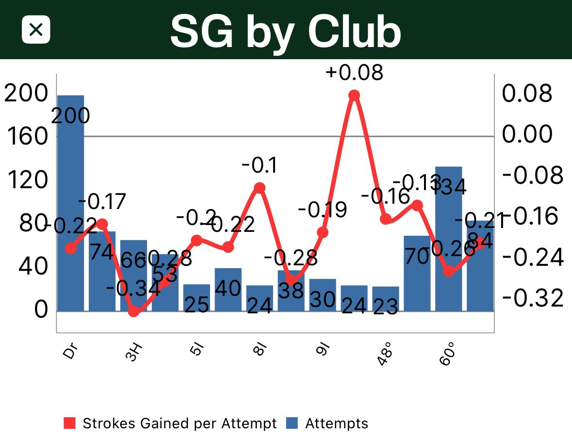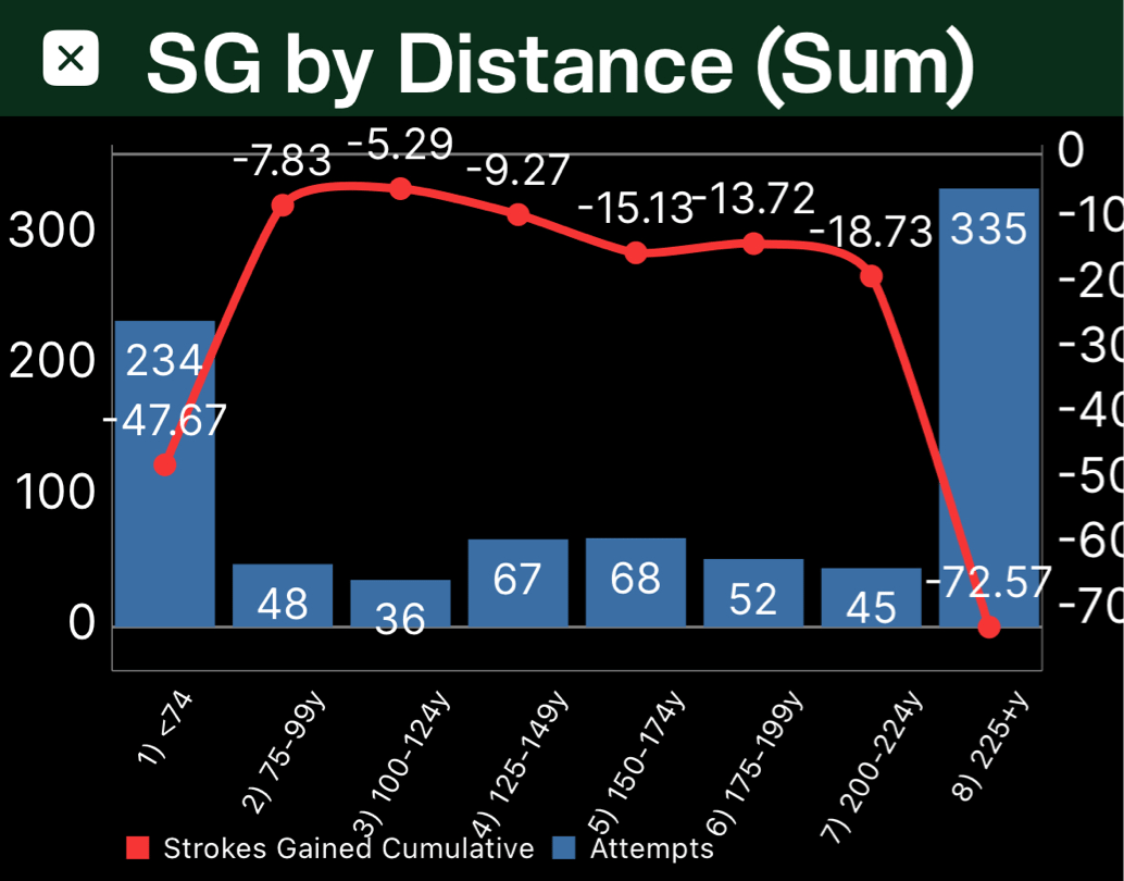 Wedge shots don’t require as many physical attributes and just due to the raw number of attempts he’ll have from that bucket… some serious improvement can be had. He’s losing almost 50 strokes in the above graphic!