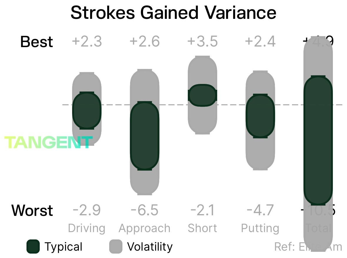 The reality is from round to round subtle differences in our swings, our mindset, or course conditions impact the way we play. We’re consistently inconsistent. Understanding which parts of our game are the most prone to variance is a good way to focus practice.