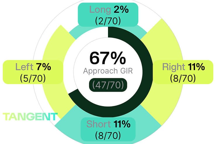 With just an average performance in greens in regulation, Malnati was going to have to make up for that in other areas, but we'll get to that in a second. One of my favorite features of the Tangent Golf app is that not only does it tell you your GIR, but it tells you why you miss. And Malnati primarily misses due to Approach shots. We can simply tap on the Approach details from the previous graphic to dive right in. It's here that we'll see that Malnati has a slight bias towards missing short and right. Something he might want to be aware of, particularly when trouble lurks in those areas.